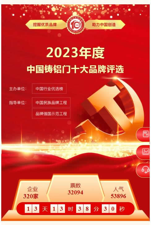 中國(guó)2023年鑄鋁門(mén)十大品牌評(píng)選活動(dòng)